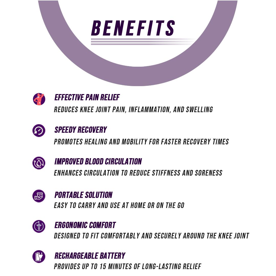 <p><b>Effective: </b>Relieves knee joint pain and stiffness, reducing inflammation and swelling; promotes injury recovery helping speed up recovery and mobility; and improves blood circulation with built-in hot compress and vibration massage.</p>